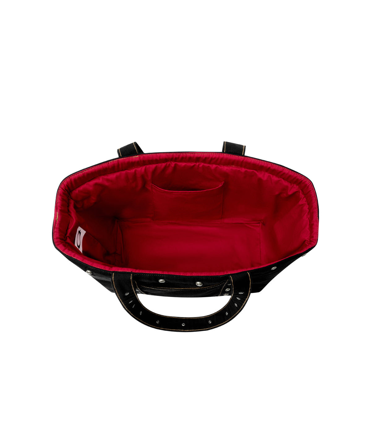 Red canvas inner lining with one small pocket